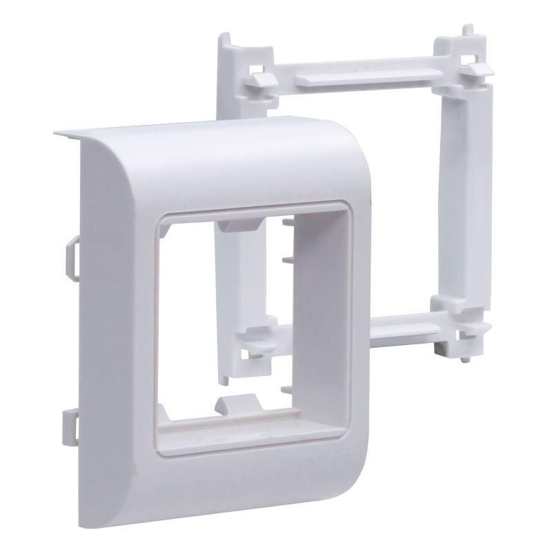 Рамка-суппорт на 2 модуля электроизделий, PDA-DN 80. Назначение: организация рабочих мест - монтаж электроустановочных изделий в пластиковые короба, тип TA-GN серии "In-liner Classic". Монтаж: монтаж суппорта внутри короба с помощью защелкивания, монтаж электроустановочных изделий в рамку - защелкиванием снаружи. Характеристики: материал – АБС-пластик и поликарбонат. Комплектация: рамка; суппорт. Типоразмер короба: 80х40, 80х60. Кол-во модулей: 2. Цвет: белый