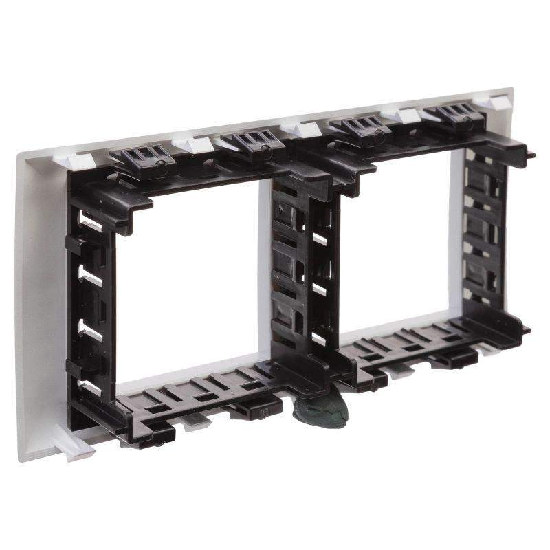 Рамка-суппорт на 4 модуля в комплекте с каркасом для монтажа в систему кабельных коробов "In-liner Front" и систему организации рабочих мест "Sotto" (алюминиевые кабель-каналы, колонны, башенки и лючки). Назначение: для монтажа в кабель-каналы, башенки, лючки, колонны. Характеристики: материал – АБС-пластик, устойчив к воздействию УФ-излучения; устанавливается на каркасы 4402812 (каркасы 4402812 идут в комплекте с рамками-суппортами). Цвет: серебристый металлик