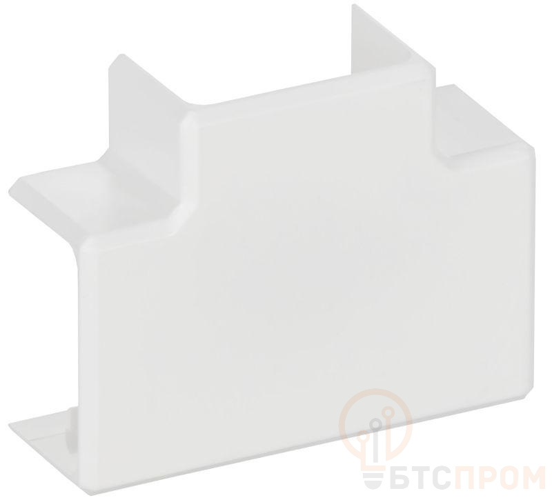 Угол Т-образный позволяет выполнить Т-образное соединение двух кабель-каналов, обеспечивает степень защиты всей системы IP40, улучшает внешний вид, закрывая место разреза. Т-образный угол закрепляется на корпусе кабель-канала простым защелкиванием. Цвет: белый.