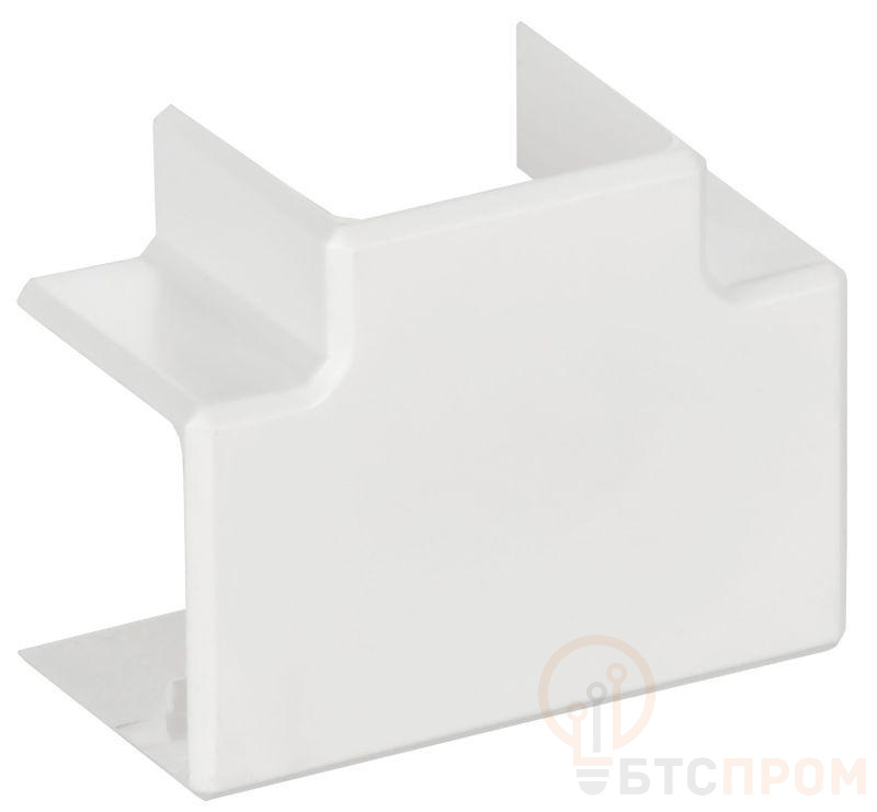 Угол Т-образный позволяет выполнить Т-образное соединение двух кабель-каналов, обеспечивает степень защиты всей системы IP40, улучшает внешний вид, закрывая место разреза. Т-образный угол закрепляется на корпусе кабель-канала простым защелкиванием. Цвет: белый.
