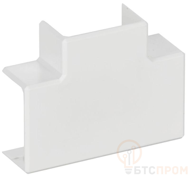 Угол Т-образный позволяет выполнить Т-образное соединение двух кабель-каналов, обеспечивает степень защиты всей системы IP40, улучшает внешний вид, закрывая место разреза. Т-образный угол закрепляется на корпусе кабель-канала простым защелкиванием. Цвет: белый.