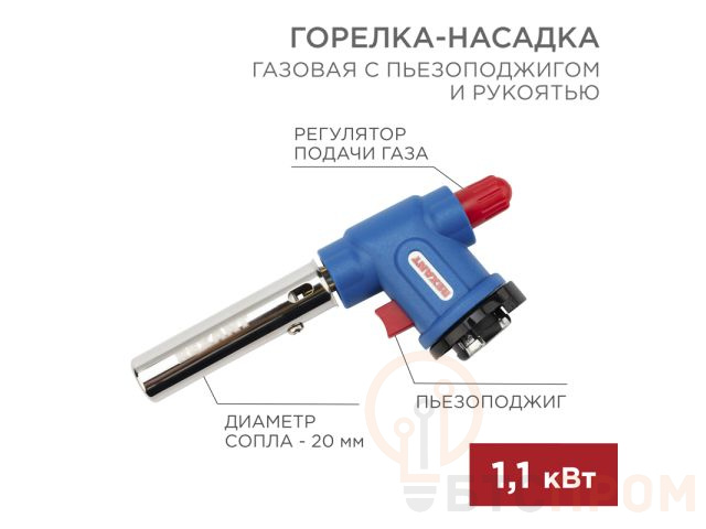 Газовая горелка-насадка REXANT GT-33 360? с пьезоподжигом. Новинка в России!