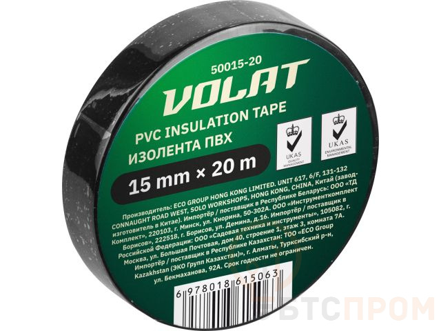 Изолента ПВХ 15ммх20м черная ВОЛАТ (130 мкм) 50015-20 фото в каталоге от BTSprom.by