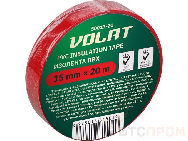 Изолента ПВХ 15ммх20м красная ВОЛАТ (130 мкм) 50013-20 фото в каталоге от BTSprom.by