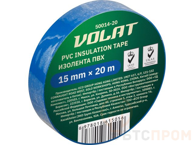 Изолента ПВХ 15ммх20м синяя ВОЛАТ (130 мкм) 50014-20 фото в каталоге от BTSprom.by