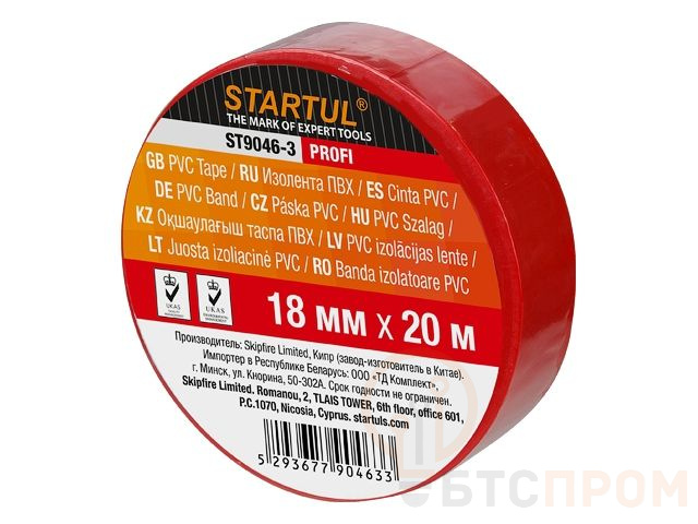 Изолента ПВХ 18ммх20м красная STARTUL PROFI (ST9046-3) (130 мкм) ST9046-3 фото в каталоге от BTSprom.by