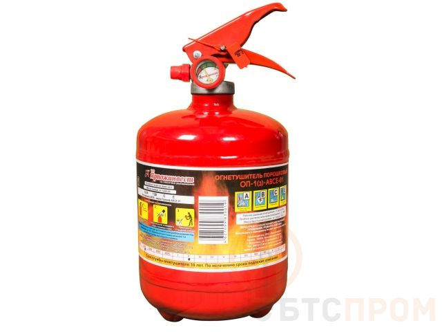 Порошковый огнетушитель ОП-1 предназначен для устранения возгораний газов, жидкостей, нефтепродуктов, металлов и древесины, электроустановок с напряжением до 1 кВт. Устройство не подойдет для устранения пожаров, которые возникают в условиях отсутствия воздуха.