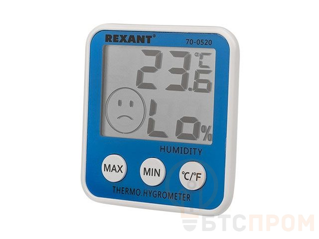 Комнатная метеостанция REXANT RX-108 предназначена для измерения показаний температуры и влажности в помещении. Регистрирует в памяти максимальное и минимальное значения температуры и влажности. Отображает общий уровень метеокомфорта в помещении. Имеет настольную подставку и магнитное крепление.