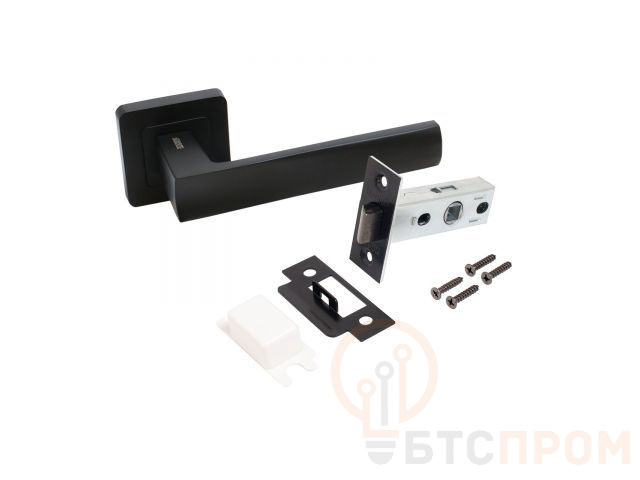 Комплект ручка и защелка АЛЛЮР АРТ "КОЛОМБО" BL+L45-8 BL (23150/S45) матовый черный (20) (компл) (УЗК) 15200