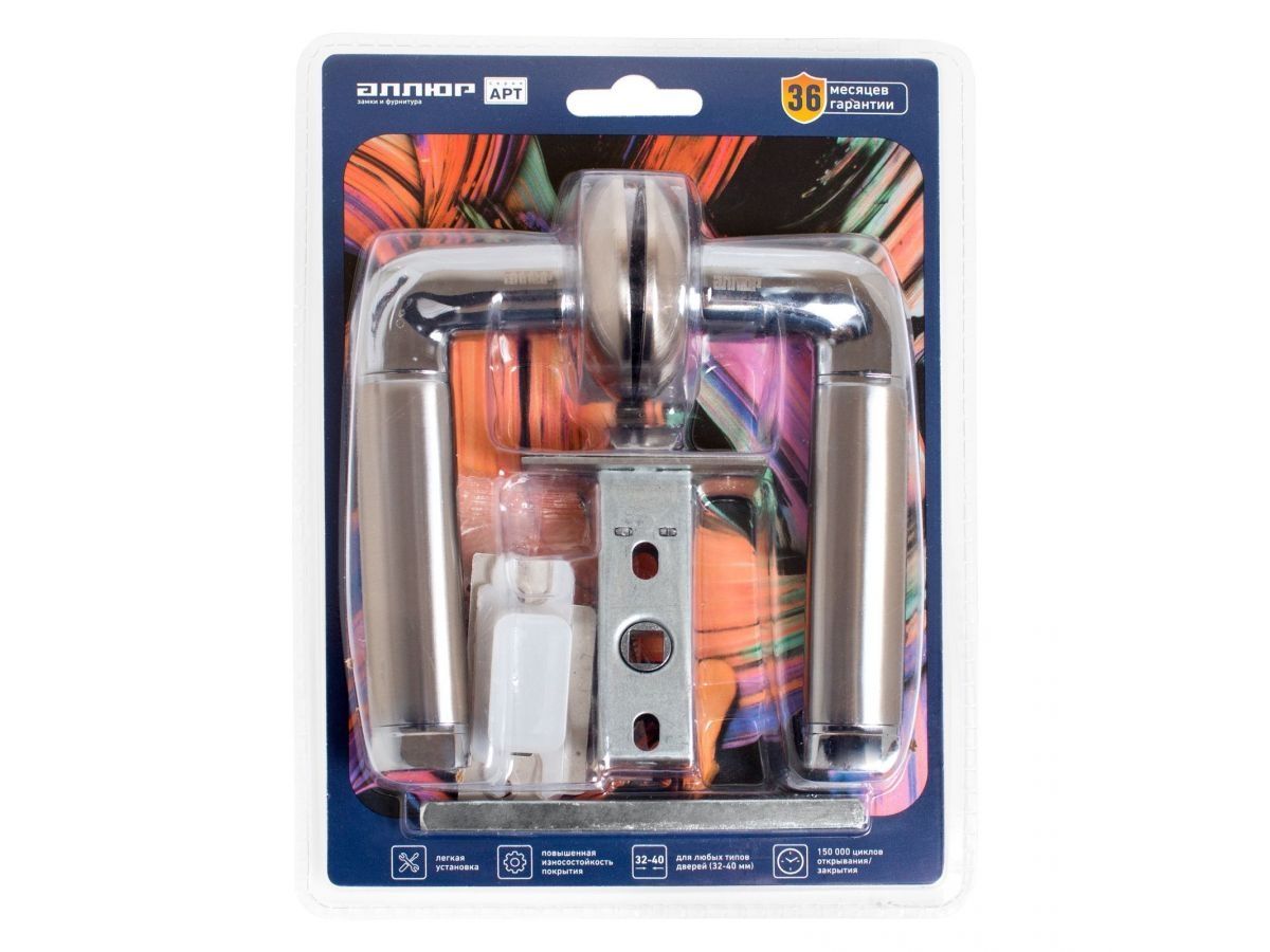 Комплект ручка и защелка АЛЛЮР АРТ "ПОЛО" SN/CP+L45-8 SN (1582/S45) мат.никель/хром (20) (компл) (УЗК) 14662