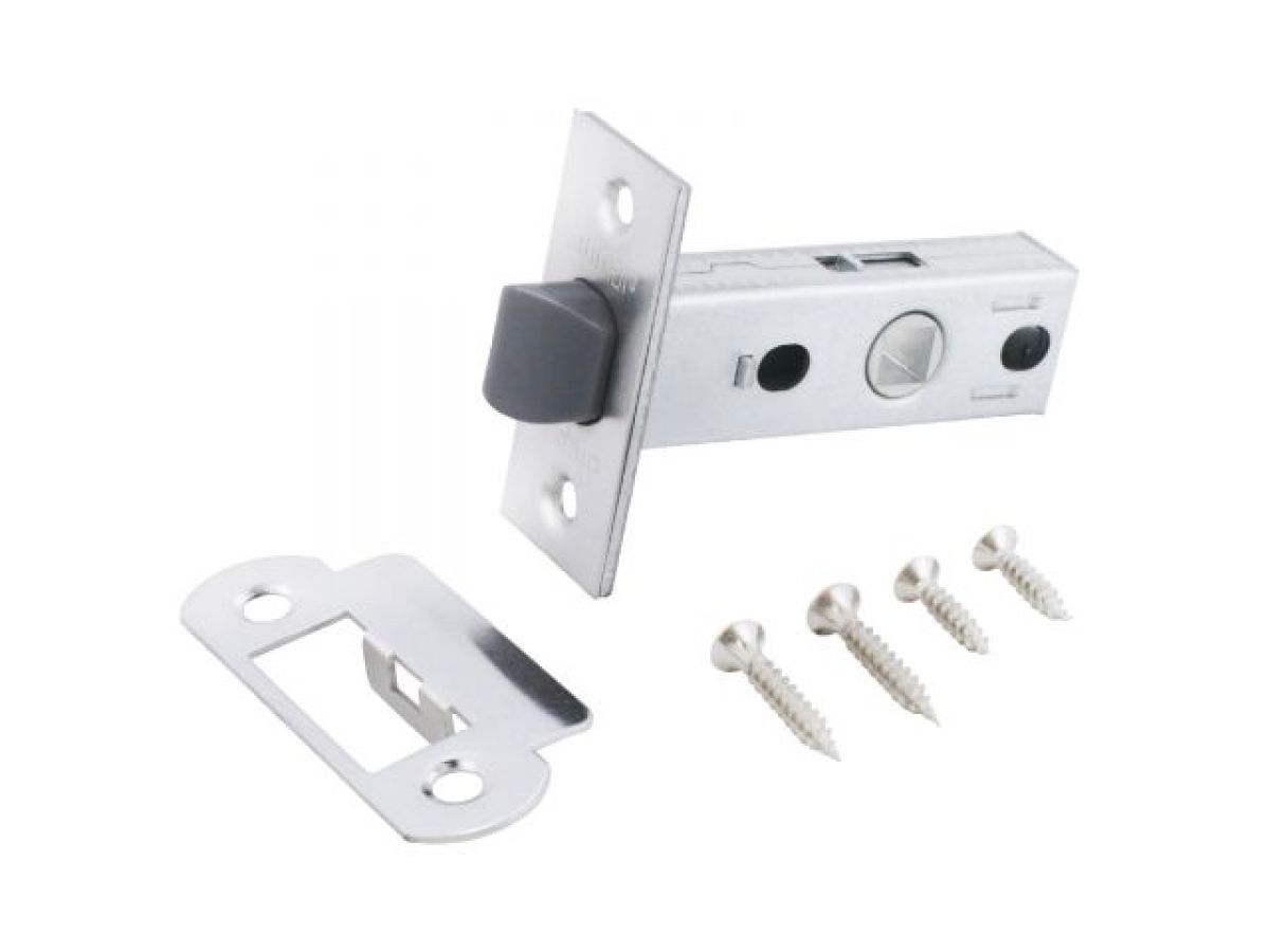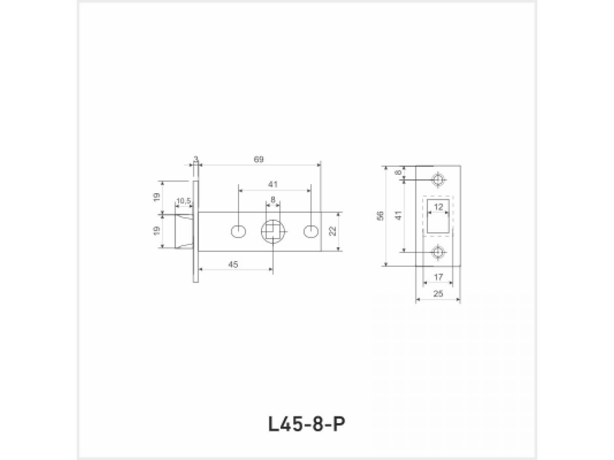 Универсальная защёлка врезная для установки на деревянные межкомнатные двери. Малошумный язычок защелки из ударопрочного пластика под цвет торцевой планки. Материал корпуса - сталь оцинкованная штампованная, гальваническое покрытие. Под ручку с квадратом 8 мм. Удаление ключевого отверстия - 45 мм. Ширина планки - 25мм. Габариты корпуса - 72.5х22х15 мм. В комплекте - защелка, ответная планка и белый пластиковый вкладыш к ней, саморезы.