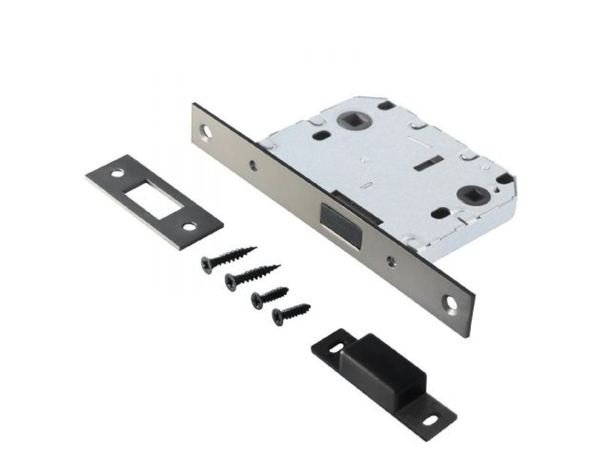 Универсальная защёлка врезная для установки на деревянные межкомнатные двери. Материал - сталь, гальваническое покрытие.Под ручку с квадратом 8 мм и сантехническую завертку с квадратом 6 мм. Удаление ключевого отверстия - 47 мм. Межосевое расстояние - 70 мм. Прямоугольная торцевая планка. Ширина планки - 18мм. Габариты корпуса - 96х71х12 мм. В комплекте - защелка, саморезы, ответная планка и белый пластиковый вкладыш к ней.
