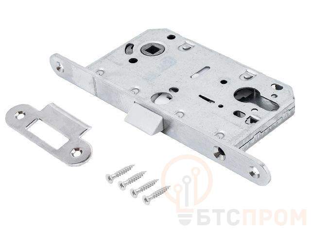 Универсальный врезной замок для установки на деревянные межкомнатные двери. Материал - сталь, гальваническое покрытие. Удаление ключевого отверстия - 50 мм. Межосевое расстояние - 85 мм. Овальная торцевая планка. Ширина планки - 18мм. Габариты корпуса - 132*74*15 мм. Защелка из ударопрочного пластика. Цилиндровый механизм в комплект не входит.