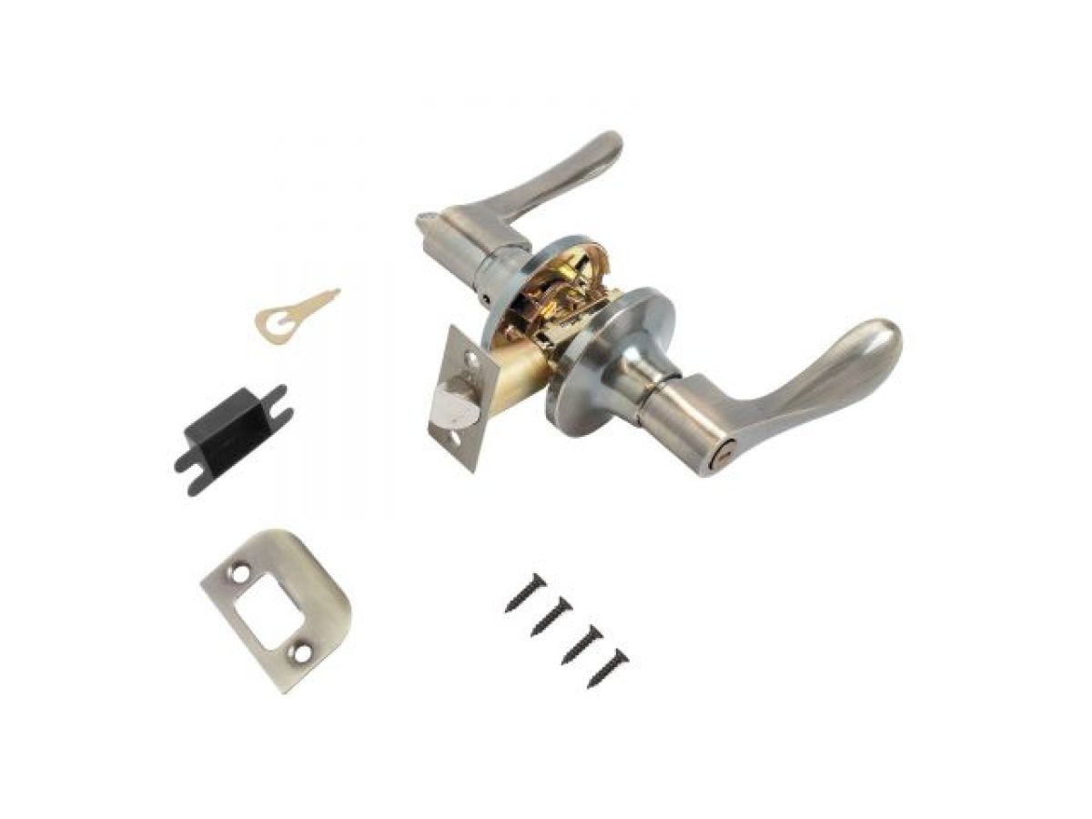 Ручка-защелка фалевая, нажимная для межкомнатных дверей . Материал ручек - алюминиевый сплав, накладок- сталь. Гальваническое покрытие. Предназначена для дверей толщиной до 40 мм. Регулируемое расстояние от края двери до оси ручек 60-70 мм. Скругленная защелка размерами 14х19 мм с вылетом 12 мм. Габариты корпуса врезной защелки 85х23х20 мм.