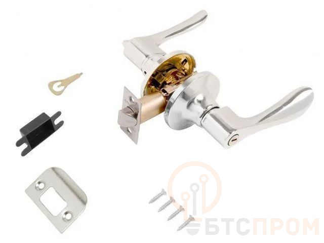 Ручка-защелка фалевая, нажимная для межкомнатных дверей . Материал ручек - алюминиевый сплав, накладок- сталь. Гальваническое покрытие. Предназначена для дверей толщиной до 40 мм. Регулируемое расстояние от края двери до оси ручек 60-70 мм. Скругленная защелка размерами 14х19 мм с вылетом 12 мм. Габариты корпуса врезной защелки 85х23х20 мм.