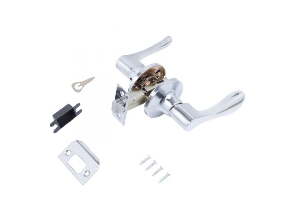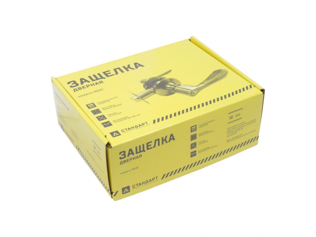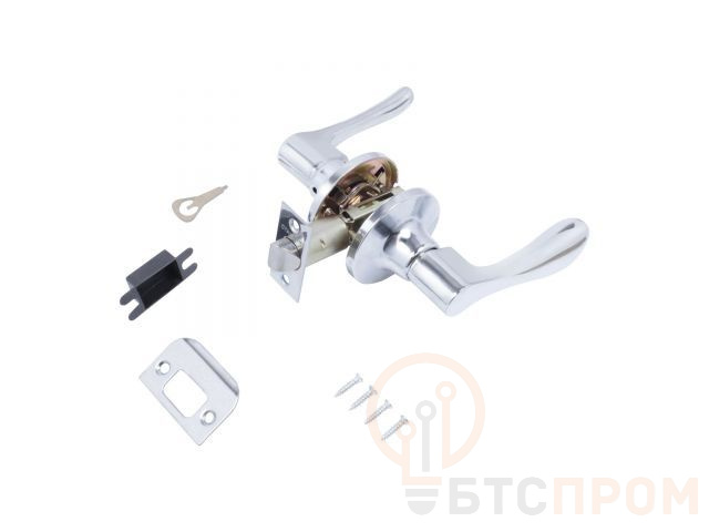 Ручка-защелка фалевая, нажимная для межкомнатных дверей . Материал ручек - алюминиевый сплав, накладок- сталь. Гальваническое покрытие. Предназначена для дверей толщиной до 40 мм. Регулируемое расстояние от края двери до оси ручек 60-70 мм. Скругленная защелка размерами 14х19 мм с вылетом 12 мм. Габариты корпуса врезной защелки 85х23х20 мм.