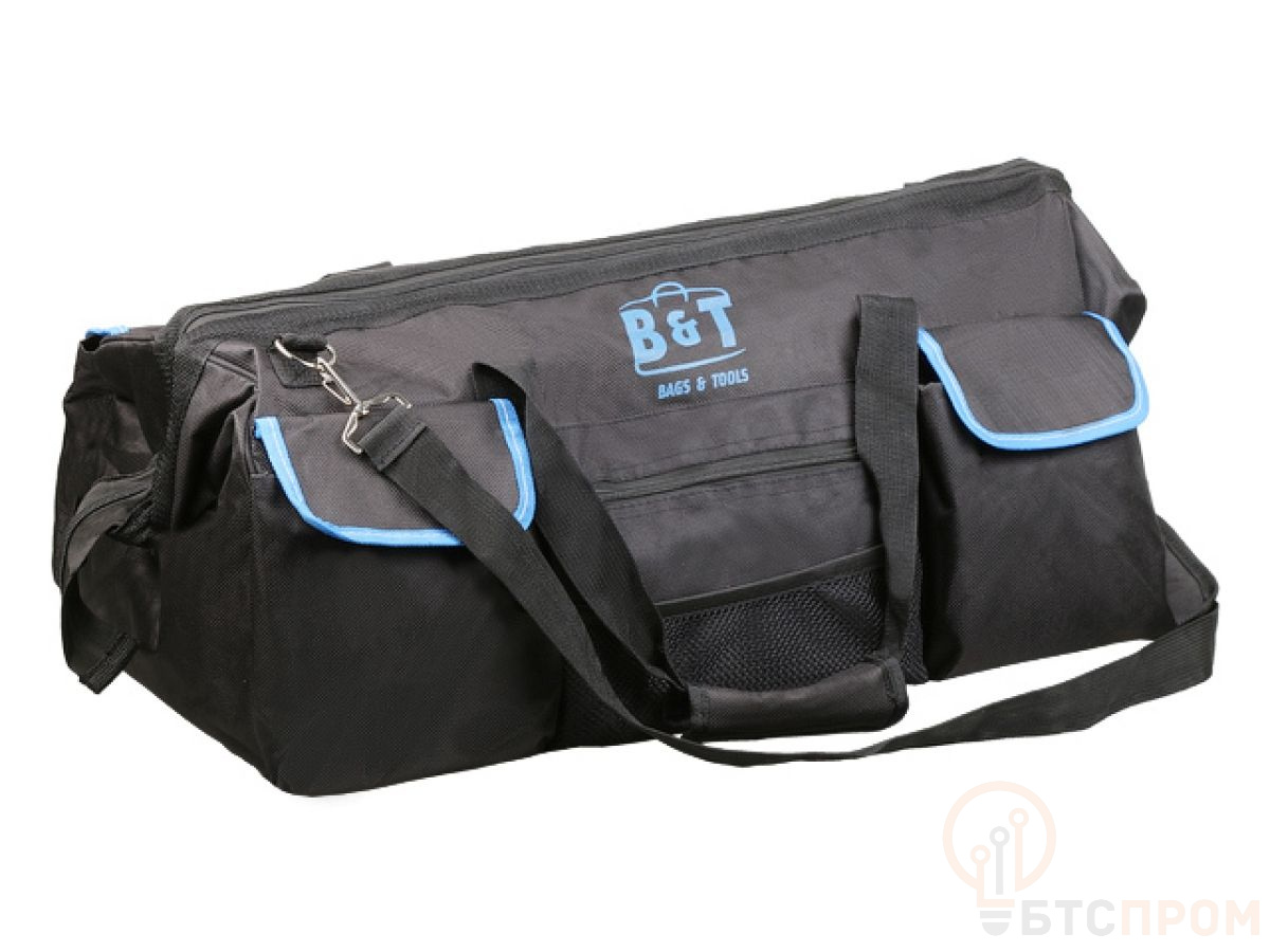Сумка для инструмента B&T предназначена для переноски, хранения и удобного использования различных инструментов. Изготовлена из прочной нейлоновой ткани, с двойной прострочкой, имеет прочные стальные карабины для плечкевого ремня, металлический каркас и усиленное дно с ножками. 16 карманов позволяют с легкостью разместить большое количество разнообразного инструмента.