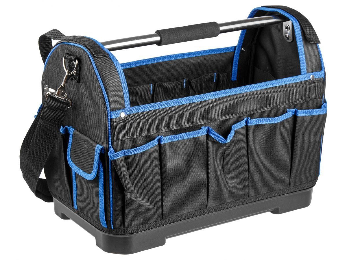 Сумка для инструмента Bull WB 4035 предназначена для переноски, хранения и удобного использования различных инструментов. Изготовлена из прочной нейлоновой ткани. Металлическая ручка с мягкой насадкой предназначена для комфортной переноски инструмента. Регулируемый ремень для переноски на плече. Пластиковое дно способствует повышенной безопасности инструмента в случае падения сумки, а также защитит инструмент внутри от намокания, если сумка стоит мокрой поверхности. Имеет 11 внешних карманов для хранения и 20 внутренних отсеков для переноса мелкой оснастки.