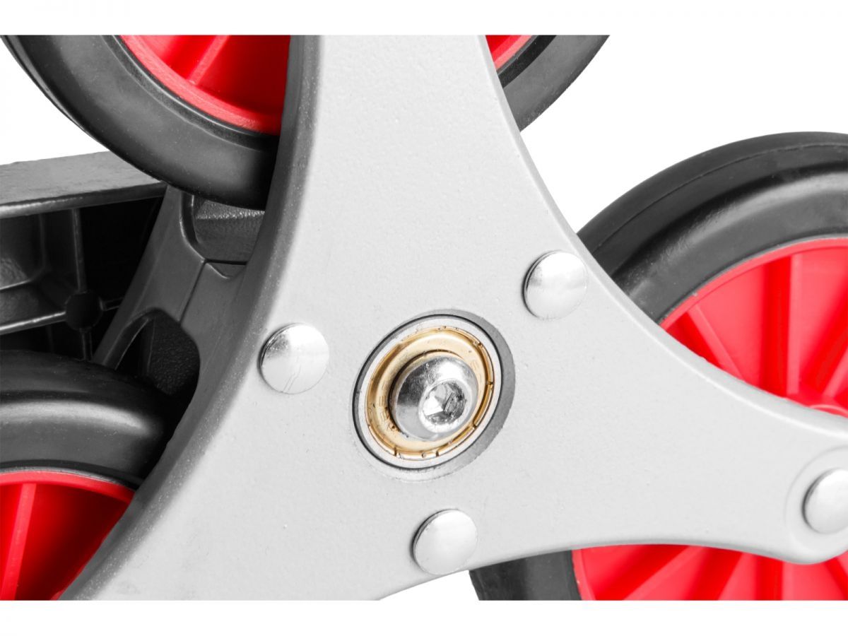 2в1: Идеально подойдет как для ровных поверхностей, так и для ступеней, за счет наличия 6 прочных обрезиненных колес, установленных на подшипниках.