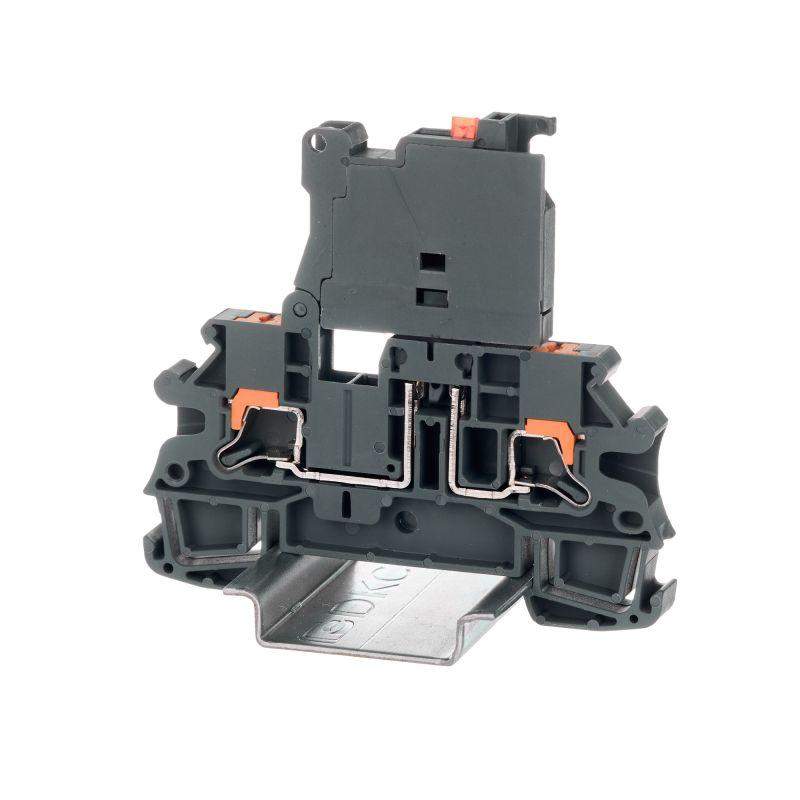 Клемма для предохранителя 5х20 мм и светодиодным индикатором на 24 В с Push-in зажимом предназначена для соединения двух проводников, ограничения максимального тока и индикации сгоревшего предохранителя. Монтаж осуществляется на DIN-рейку OMEGA. Температура эксплуатации от -40 до +105оС. Корпус выполнен из ПА 6.6 с классом горючести V0 UL-94. Серый цвет, 2 точки подключения, 4 мм2. Система вставных перемычек. Габариты (В?Ш?Г) 65?69?6,2 мм.