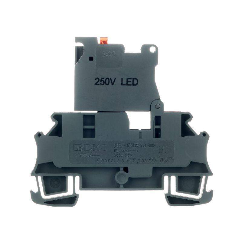 Клемма для предохранителя зажим Push-in 2 точки подключения индикация 24В 4кв.мм сер. DKC IPR-4-HESILED24