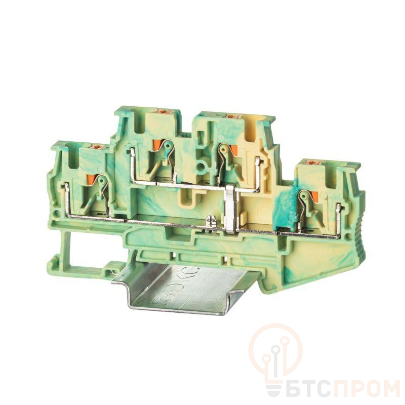 Клемма для заземления двухуровневая с Push-in зажимом. За счет кнопки-толкателя обеспечивается защита от ошибок при монтаже и случайного прикосновения. Клемма имеет электрический контакт с DIN-рейкой. Монтаж осуществляется на DIN-рейку OMEGA. Температура эксплуатации от -40 до +105оС. Корпус выполнен из ПА 6.6 с классом горючести V0 UL-94. Желто-зеленый цвет, 4 точки подключения, 4 мм2. Система вставных перемычек. Габариты (В?Ш?Г) 47,6?83,7?6,2 мм.