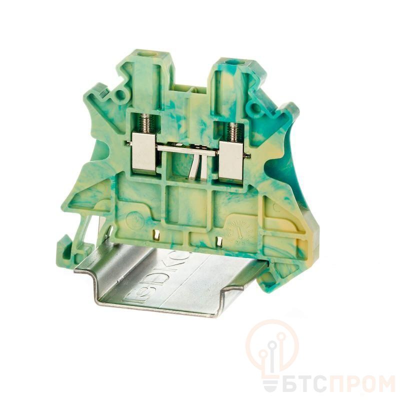 Клемма для заземления с винтовым зажимом предназначена для соединения двух проводников. Монтаж на DIN-рейку OMEGA. Температура эксплуатации от -40 до +105°C. Корпус выполнен из ПА 6.6 с классом горючести V0 UL-94. Имеет электрический контакт с DIN-рейкой. Желто-зеленый цвет, 2 точки подключения, 2.5 мм2. 1 канал для вставных перемычек. Габариты (В?Ш?Г) 47,5?53?5,2 мм.