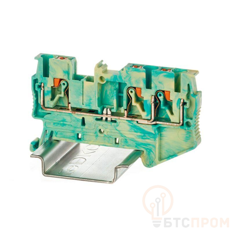 Клемма для заземления с Push-in зажимом предназначена для соединения трех проводников, а за счет кнопки-толкателя обеспечивается защита от ошибок при монтаже и случайного прикосновения. Клемма имеет электрический контакт с DIN-рейкой. Монтаж осуществляется на DIN-рейку OMEGA. Температура эксплуатации от -40 до +105оС. Корпус выполнен из ПА 6.6 с классом горючести V0 UL-94. Желто-зеленый цвет, 3 точки подключения, 2.5 мм2. 2 канала вставных перемычек. Габариты (В?Ш?Г) 37,2?60,7?5,2 мм.