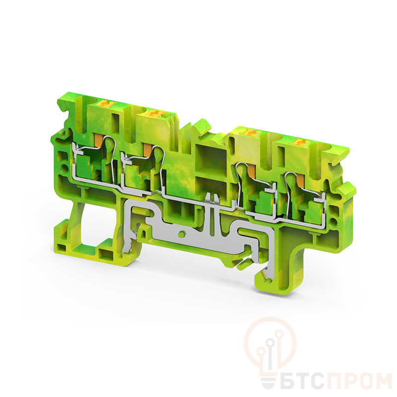 Заземляющая клемма типа push-in с 4-мя выводами на номинальное сечение проводника 2,5 кв. мм. Клеммы заземляющие с выводами безвинтового типа с зажимами push-in с функцией PE предназначены для электрического и механического соединения медных проводников с DIN-рейкой в распределительных шкафах и щитах САУ. Клеммы позволяют легко присоединить круглые медные проводники, номинальным сечением 2,5 кв.мм, обеспечивая надежный контакт и простоту сборки электрических схем.