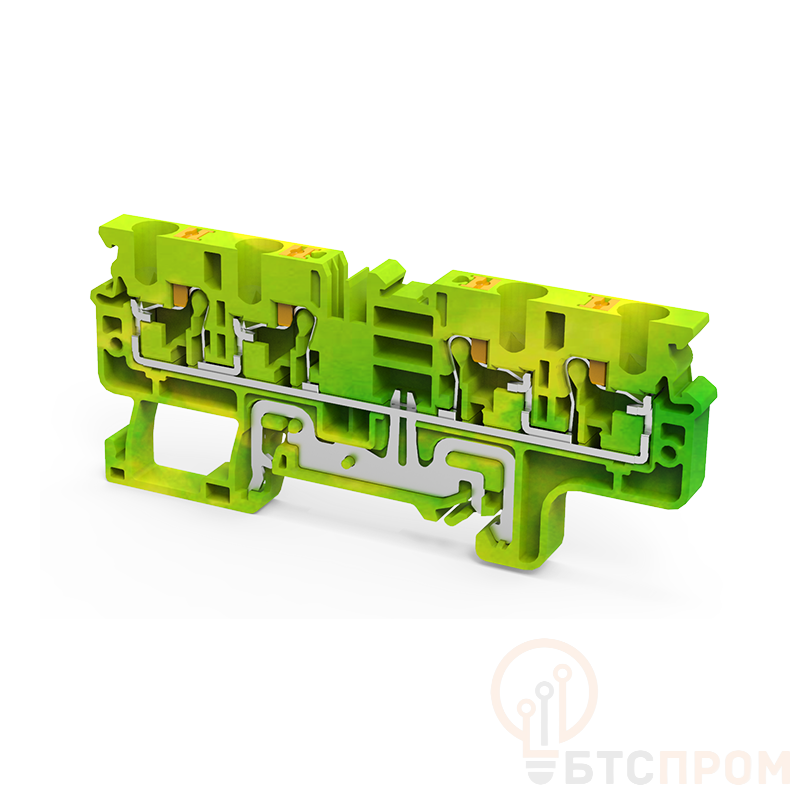 Заземляющая клемма типа push-in с 4-мя выводами на номинальное сечение проводника 4 кв. мм. Клеммы заземляющие с выводами безвинтового типа с зажимами push-in с функцией PE предназначены для электрического и механического соединения медных проводников с DIN-рейкой в распределительных шкафах и щитах САУ. Клеммы позволяют легко присоединить круглые медные проводники, номинальным сечением 4 кв.мм, обеспечивая надежный контакт и простоту сборки электрических схем.