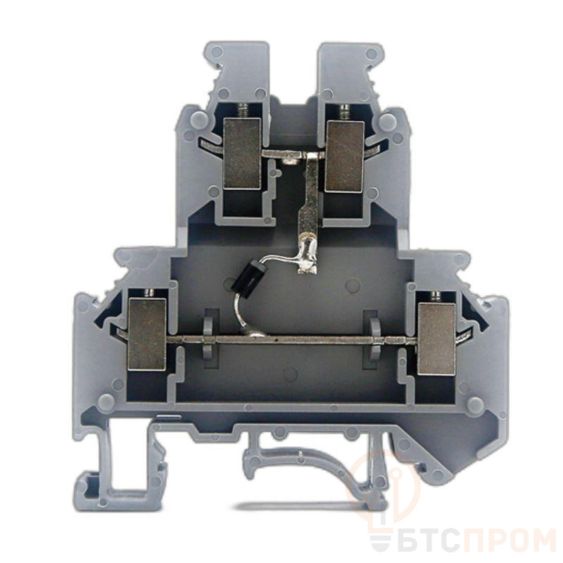 Клемма с диодами 1N4007 согласно схеме с винтовым зажимом предназначена для соединения четырех проводников, интеграции электронных компонентов в состав цепи. Монтаж на DIN-рейку OMEGA. Температура эксплуатации от -40 до +105°C. Корпус выполнен из ПА 6.6 с классом горючести V0 UL-94. Серый цвет, 4 точки подключения, 4 мм2. Габариты (В?Ш?Г) 62?56?6,2 мм.