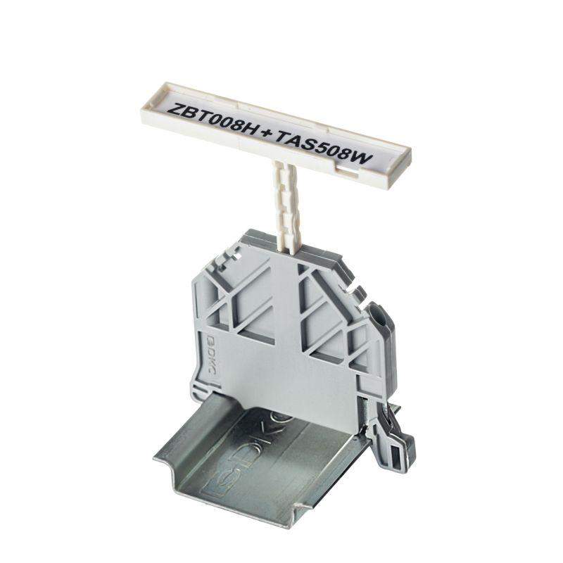 Держатель маркировки из полиамида для торцевого фиксатора с пружинным зажимом ZBT008. Совместим с маркером TAS508W (50?8 мм). Цвет - серый.