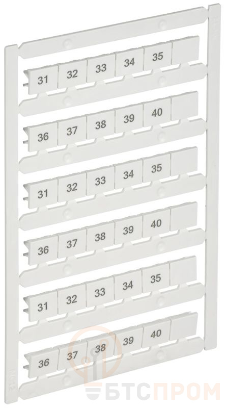 Маркер выполнен из прочного пластика, устойчивого к внешним воздействиям, и надежно фиксируется на термоусадке. На его лицевой стороне нанесена четкая и долговечная гравировка с номером позиции "31-40", что обеспечивает быструю идентификацию линии или оборудования даже спустя длительное время.