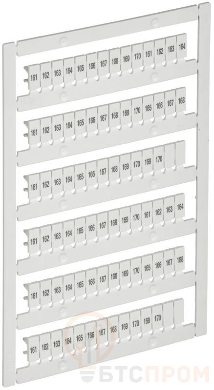 Изделие изготовлено из прочного износостойкого пластика, устойчивого к воздействию масел, влаги и механическим повреждениям. Маркер имеет стандартный размер для данного сечения, обеспечивает удобный монтаж и надежную фиксацию на кабеле. Четкая белая поверхность с нанесенной черной маркировкой "161-170" обеспечивает отличную читаемость информации в течение всего срока службы.