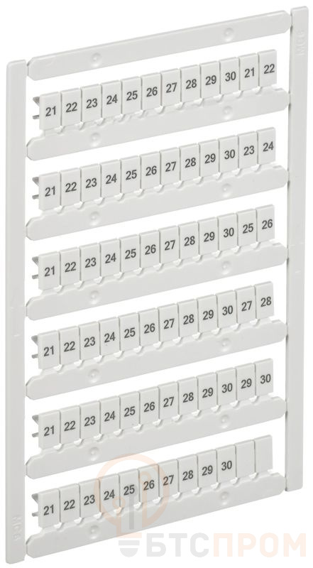 Характеристики: Предназначен для нанесения маркировки на плоские поверхности маркеров типа CTS/CP сечением 4 мм². Цифровой индекс "21-30" указывает на диапазон нумерации. Изготовлен из прочного пластика, устойчивого к воздействию масел, влаги и механическим повреждениям. Имеет стандартный размер и надежное крепление.
