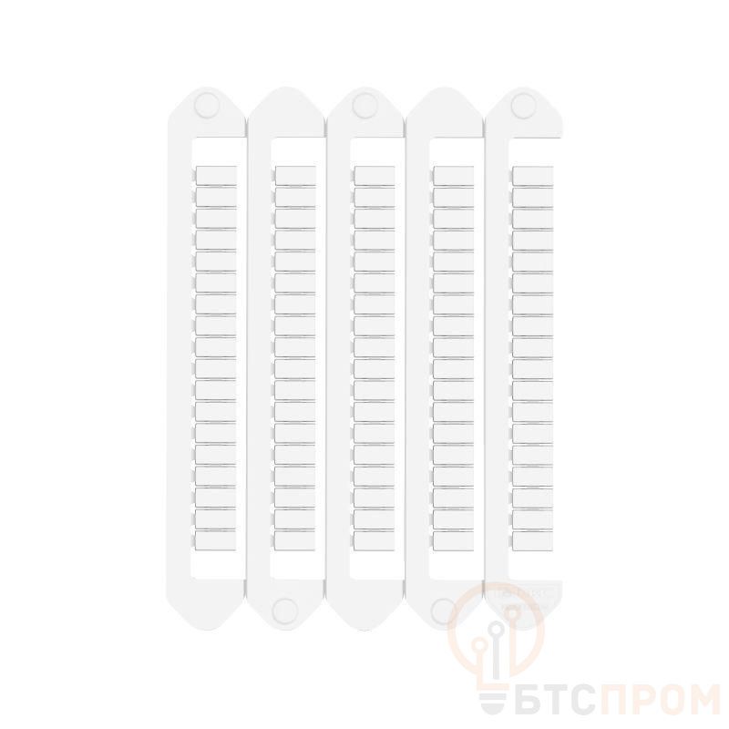 Маркировка клемм компании ДКС для печати на принтере MarkTC и MarkTC Plus. Материал – АБС-ПК. Класс горючести по UL94 - V0. Температура эксплуатации от –40 до +80 °С. Цвет – белый. Фиксируется на клеммах защелкиванием. Тег размером 5х10 мм. На пластине 90 тегов. В упаковке 10 пластин - 900 тегов.