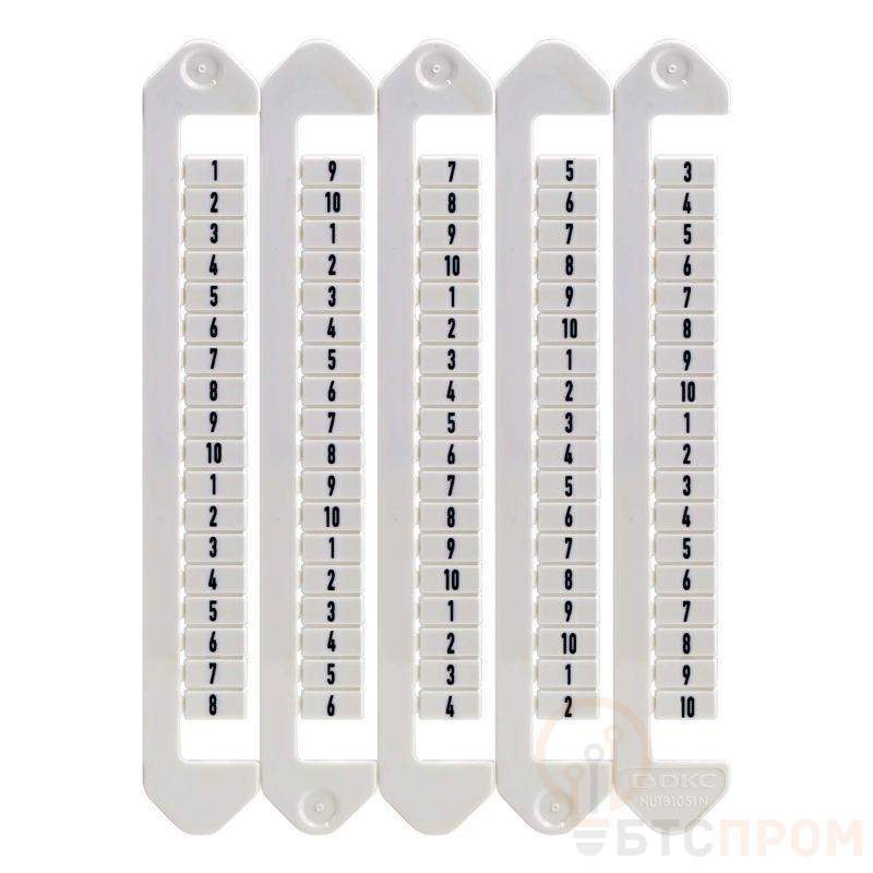 Маркировка кле мм "Nuputuk" изготавливается из композиционного материала АБС-ПК. Класс горючести по UL94 – V0. Температура эксплуатации: от -40 до +80 °С. Цвет – белый. Фиксируется на клеммах защелкиванием. Символы от 1 до 10, вертикальная ориентация. Тег размером 5х10 мм. На пластине 90 тегов. В упаковке 5 пластин – 450 тегов.