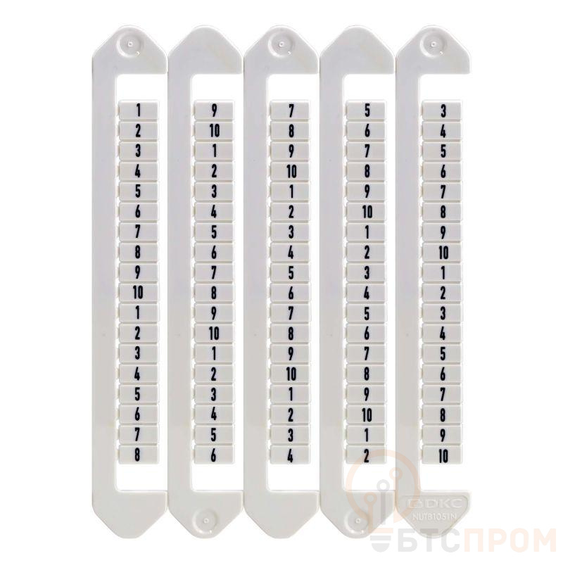 Маркировка кле мм "Nuputuk" изготавливается из композиционного материала АБС-ПК. Класс горючести по UL94 – V0. Температура эксплуатации: от -40 до +80 °С. Цвет – белый. Фиксируется на клеммах защелкиванием. Символы от 41 до 50, вертикальная ориентация. Тег размером 5х10 мм. На пластине 90 тегов. В упаковке 5 пластин – 450 тегов.