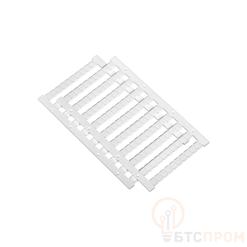 Маркировка имеет стандартный размер 2.5 мм и поставляется в виде пустой бирки, что позволяет наносить обозначения индивидуально, используя маркер или принтер. Корпус выполнен из прочного белого пластика, устойчивого к воздействию масел, щелочей и механическим повреждениям. Удобная пружинная защелка обеспечивает быстрый и надежный монтаж на DIN-рейку или провод без использования инструментов.
