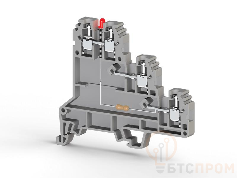 Клеммник PUK 3 SLD от Klemsan – это специализированный трехъярусный модульный терминал, предназначенный для удобного и компактного подключения датчиков с проводом сечением до 2.5 кв.мм. Ключевой особенностью модели является встроенная светодиодная индикация напряжения 24 VDC, которая обеспечивает визуальный контроль статуса питания и работы подключенного оборудования, что значительно упрощает диагностику и обслуживание систем.