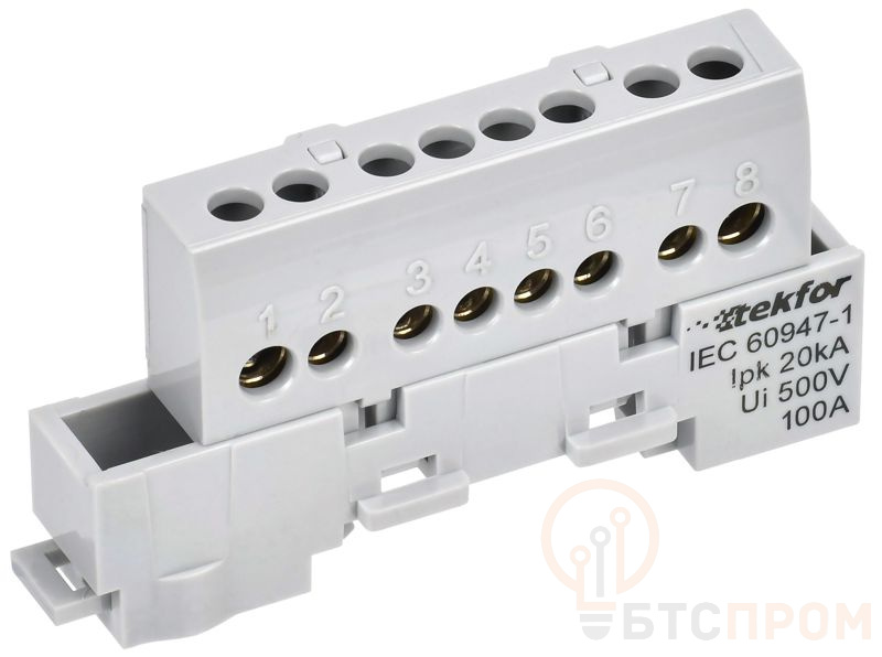 Ключевые характеристики: номинальное сечение 6 мм², рассчитана на подключение до 8 проводников сечением от 4 до 10 мм². Монтаж осуществляется на DIN-рейку 35 мм с помощью универсального держателя, что значительно упрощает и ускоряет установку. Шина оснащена прозрачной защитной крышкой для дополнительной безопасности.