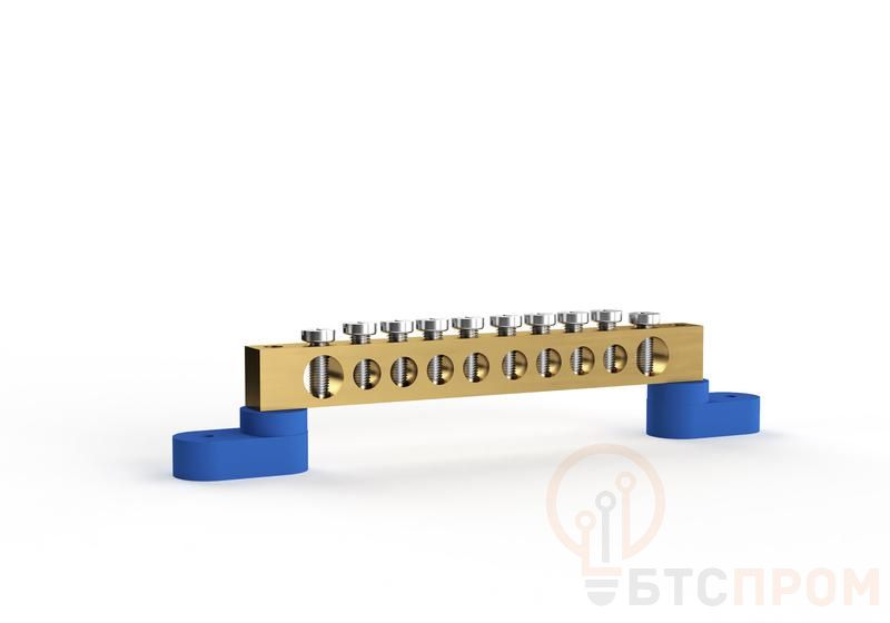 Шина нулевая 6х9мм 10 отвер. латунь У2-С на двух угловых изоляторах TOKOV ELECTRIC TKE-BSB-69-10-L2/N