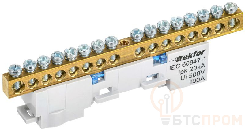Ключевые характеристики: номинальный ток до 250А, количество присоединительных отверстий — 10, сечение подключаемого проводника — до 16 мм², крепление на DIN-рейку 35 мм. Универсальный держатель значительно упрощает и ускоряет монтаж. Шина широко применяется в электрощитовом хозяйстве жилых, коммерческих и промышленных зданий для безопасного распределения электроэнергии и заземления.
