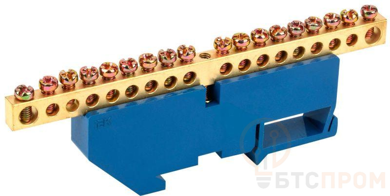 шина нулевая n 6х9 18 отвер. латунь син. изолятор на din-рейку proxima ekf sn0-63-18-d от BTSprom.by