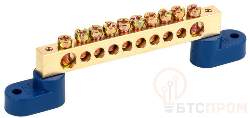шина нулевая n 8х12 10 отвер. латунь 2 син. угловых изолятора proxima ekf sn0-125-10-2 от BTSprom.by