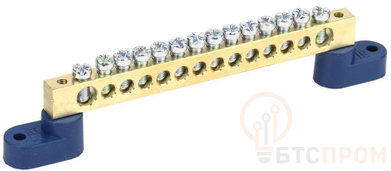 шина нулевая n 8х12 14 отвер. латунь 2 син. угловых изолятора proxima ekf sn0-125-14-2 от BTSprom.by