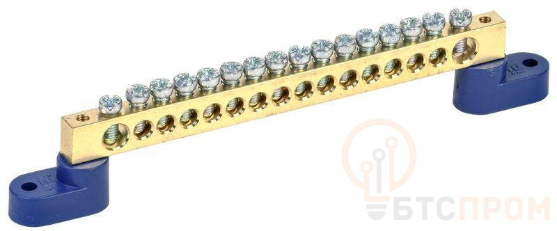 шина нулевая n 8х12 16 отвер. латунь 2 син. угловых изолятора proxima ekf sn0-125-16-2 от BTSprom.by