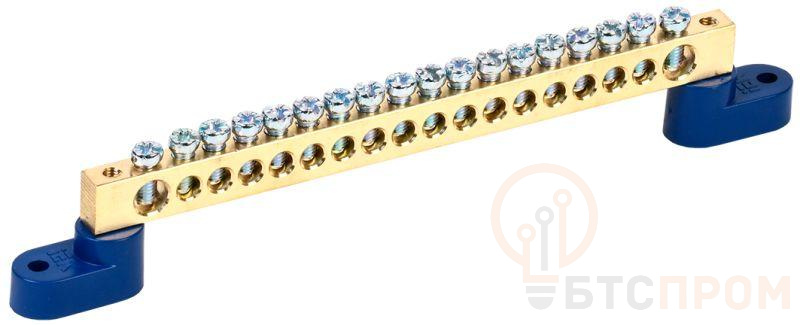 шина нулевая n 8х12 18 отверстий 2 синих угловых изолятора латунь proxima ekf sn0-125-18-2 от BTSprom.by