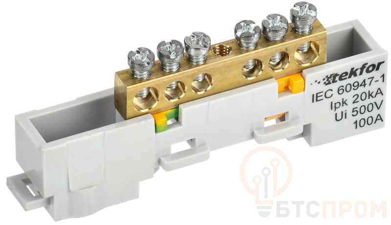 Шина PE "земля" неизолированная на универсальном держателе 6х9-6-Ж от бренда TEKFOR (артикул TF-NN10-06-DL-K05) — это высококачественный электроустановочный компонент, предназначенный для организации надежного и безопасного заземления в распределительных щитах и шкафах управления. Изделие представляет собой медную шину с поперечным сечением 6x9 мм, что обеспечивает отличную проводимость и способность выдерживать значительные токовые нагрузки.