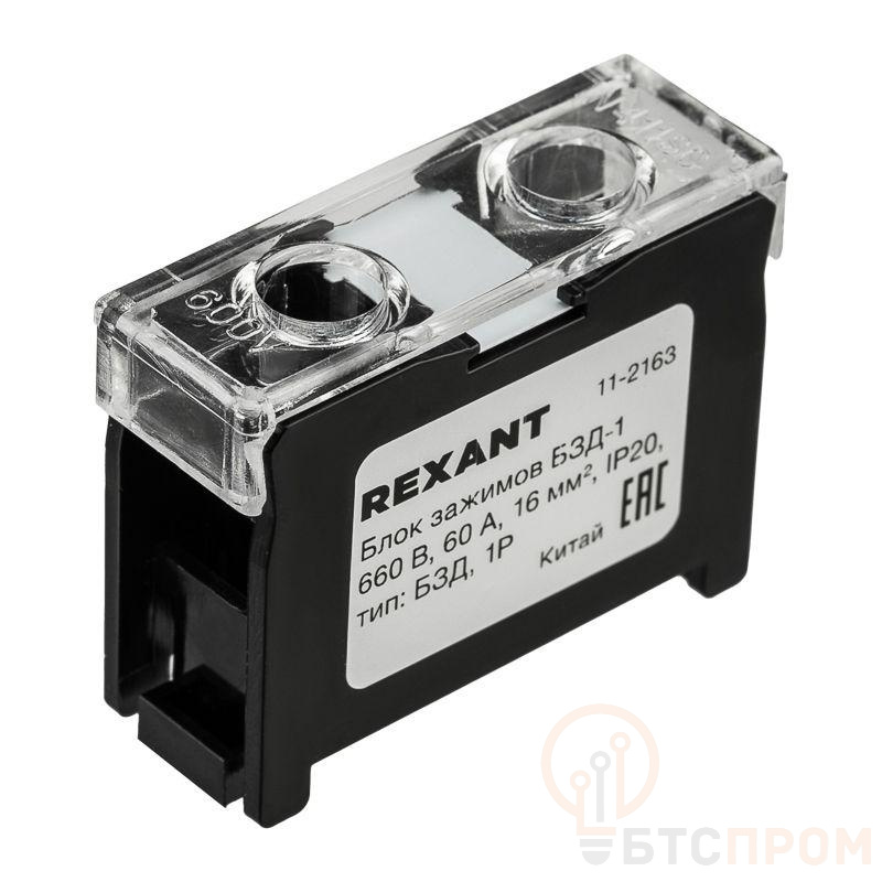 Блок зажимов клеммный БЗД 1п 16кв.мм 60А на DIN-рейку Rexant 11-2163 фото в каталоге от BTSprom.by